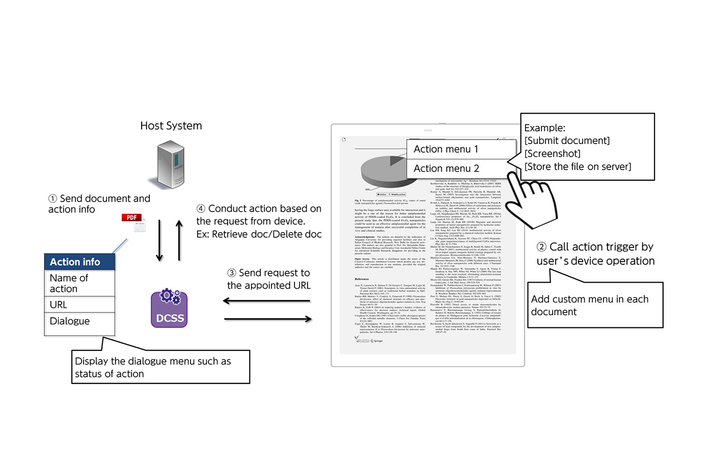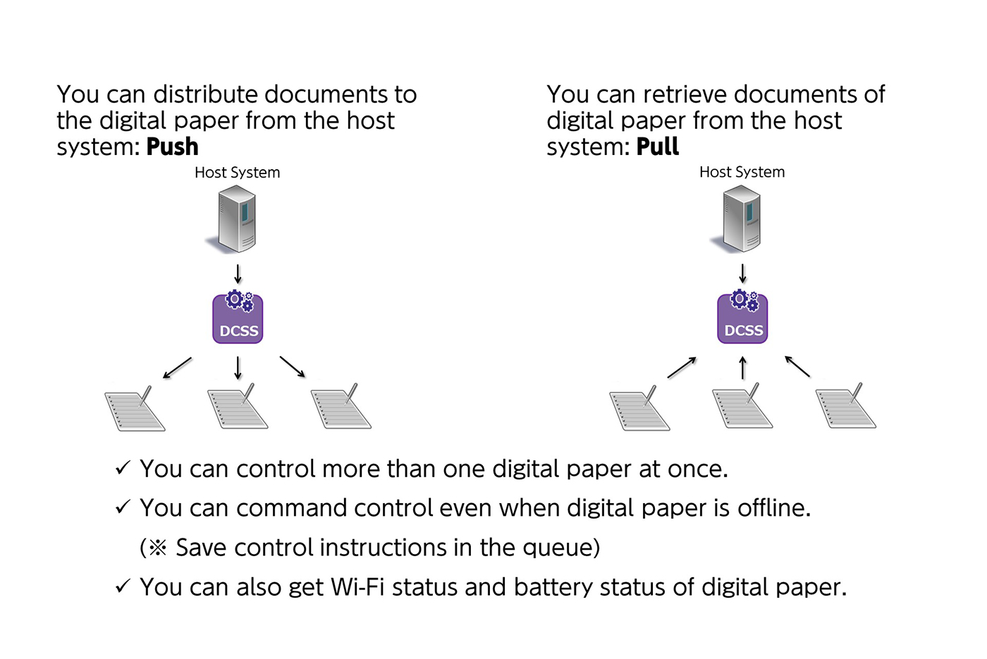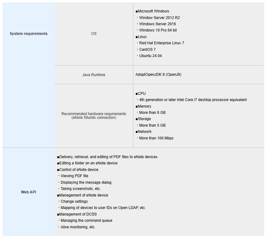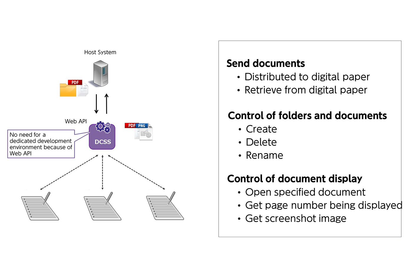The DCSS is the software for operating a plurality of Digital Paper devices in collaboration with systems of universities, factories, hospitals and enterprises.